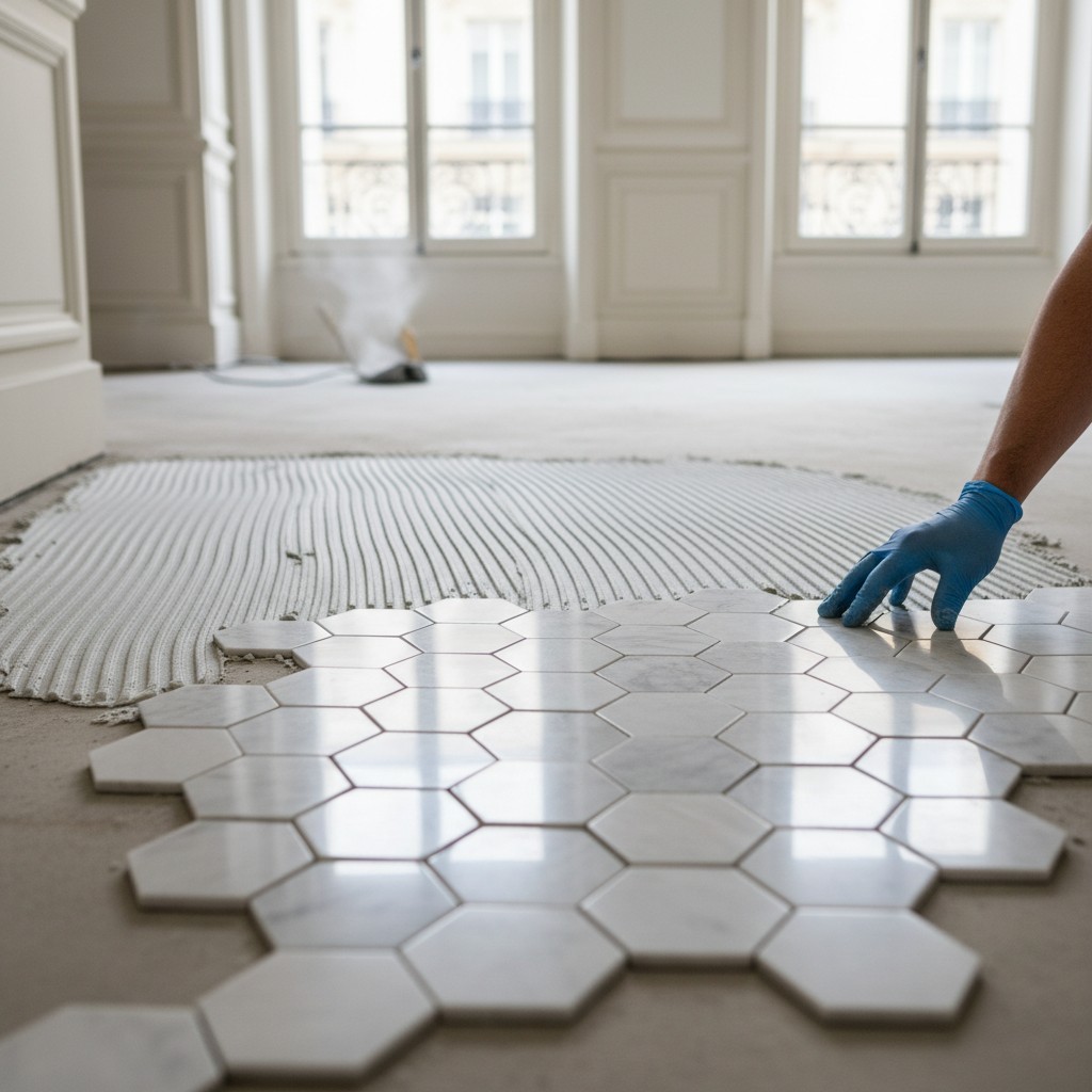 Nous assurons la pose de tous types de carrelage (faïence, grès cérame, pierre naturelle...) pour les particuliers et les professionnels. Bénéficiez d'une pose soignée et durable, réalisée par nos experts.